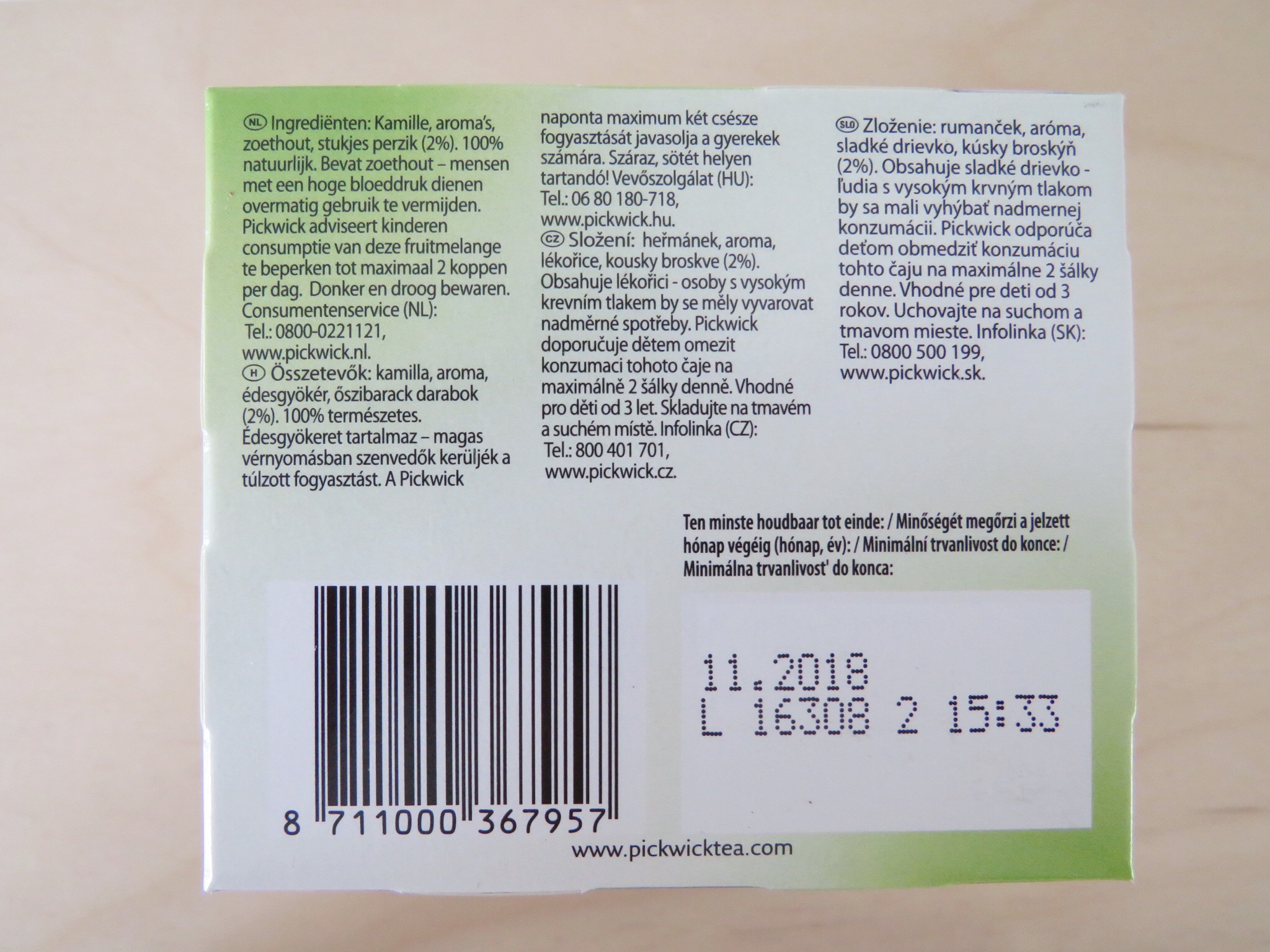 Daarnaast is opvallend dat Pickwick One Two Tea Peach slechts 2% perzikstukjes bevat en Pickwick One Two Tea Banana slechts 2% stukjes banaan. Pickwick One Two Tea Apple bevat wel 25% appel.